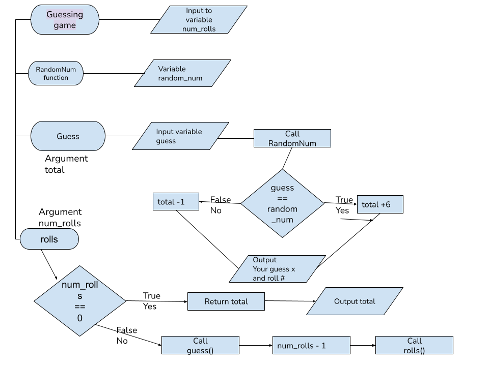 In this CFU we created a program that ask the user how many times they want to roll the dice. For every round a random number will be picked and the user has to guess the number. |