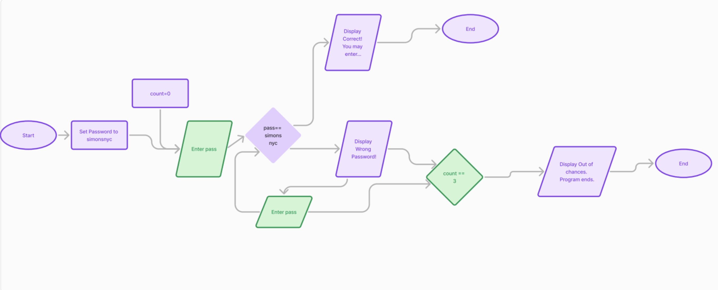 In this the user get to pick what version they want. Version 1 allows the user to guess the password infinite times. Version 2 allows the user 3 guesses